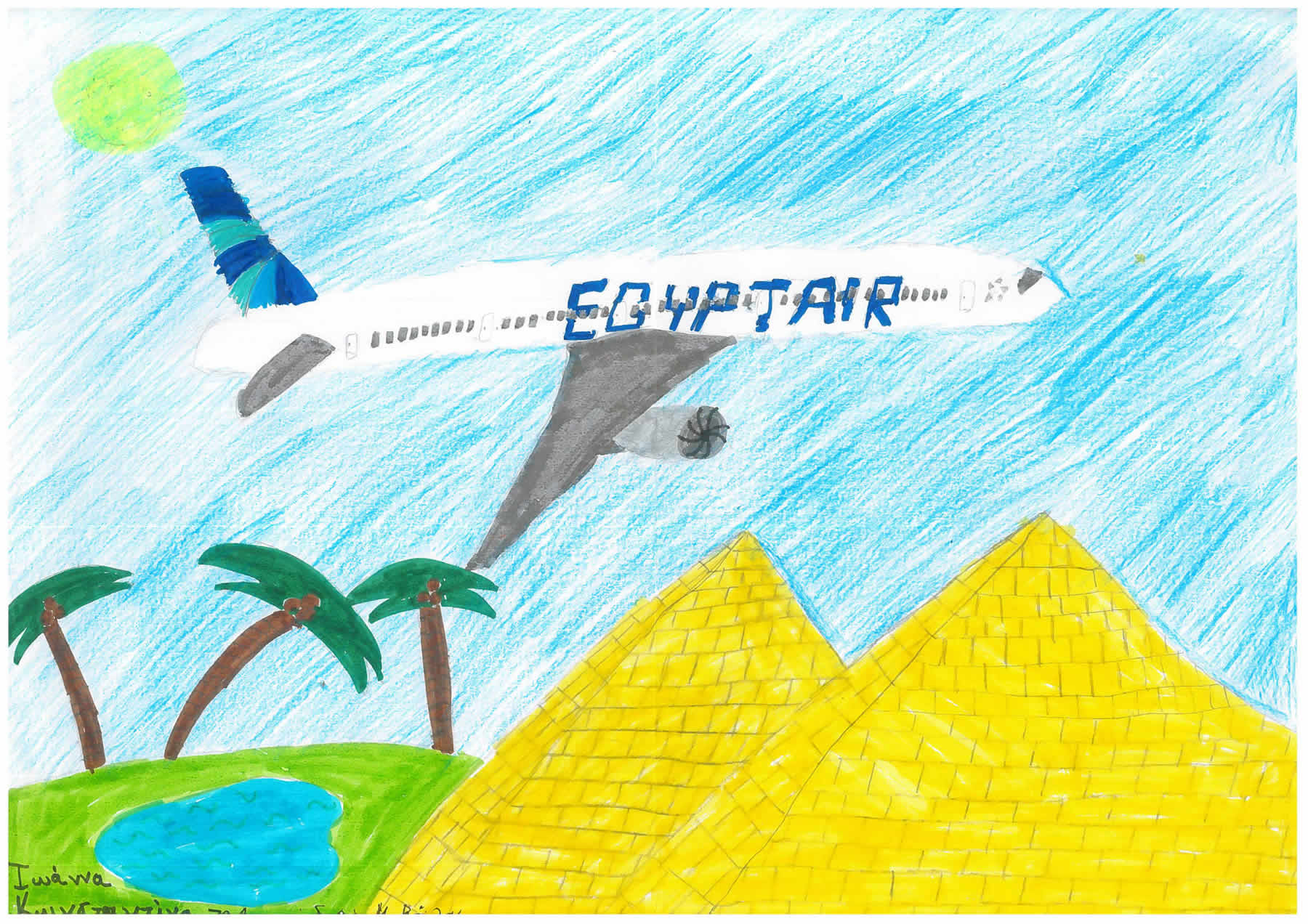 An exhibition of miniature airplanes of EGYPTAIR, images of the first passenger airplanes up to the most modern and aerial photos of historical monuments and landscapes of Egypt were displayed in the grand floor of the men quarter. Children took part on a theme child painting contest entitled “Egypt from above”, inspired by all these images and the best three (3) paintings were awarded.