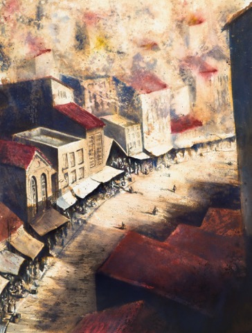 The works in this group, all ink on handmade paper, constitute a subjective emotional record of the painter’s relationship with the City, with painterly density as well as chromatic clarity, imbued with History and dotted with multiple meanings.